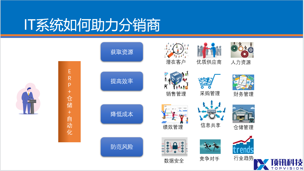 頂訊一體化IT系統可以在獲取資源、提高效率、降低成本、防范風險上助力半導體分銷商,比如在半導體分銷商出海以及應對全球化趨勢上,也有一些獨特的解決方案。